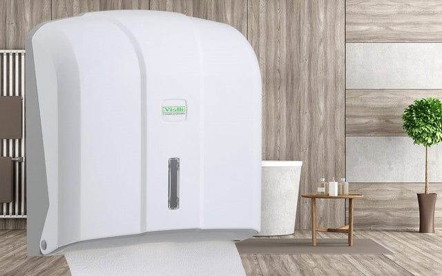 Dispenser pentru prosoape de hartie pliate tip ZZ de culoare alba. Confectionat din material plastic ABS. Prevazut cu sistem de inchidere cu cheita, antifurt. Indicator de cantitate. Se monteaza pe perete cu ajutorul unor diblii speciali care vin odata cu produsul. Daca doriti se pot monta si cu ajutorul unei bande dublu adezive. Dimensiuni: 27x27x11.5cm. Acest produs beneficiaza de certificat de calitate si conformitate internationale.