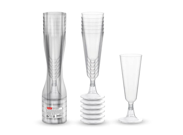 Set pahare de plastic pentru sampanie, transparente, 125 ml, 6 bucati